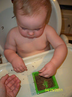 Today our Masterpiece was nature related. We did mini greenhouses which is made by Miracle Gro. They are little premade kits that you can buy individually. They are cheap (my walmart had them $1 each) and fun. All you do is pour in the 2 bags of dirt, then bury your seeds in that dirt, add 1/4 C water and Presto! Done. Taking care of them is easy as well, simply add water once the soil turns light brown until it's back dark. Easy Peasy, and kids love them! (oh once they touch the roof or grow about 3 inches, you should replant in a real garden)